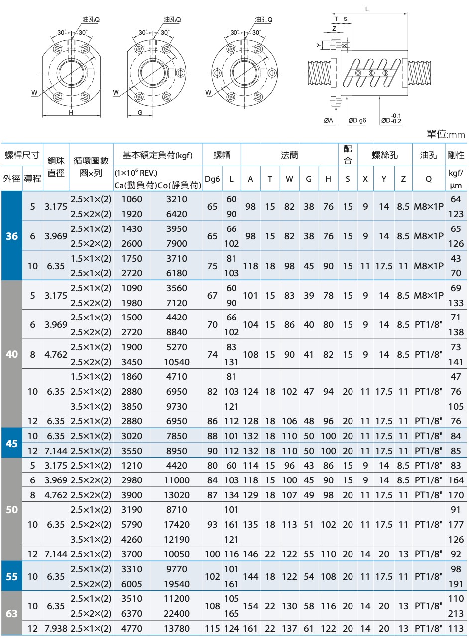 產品特性 • 提供較順暢之鋼珠迴流 • 較低噪音 • 對於一般導程及大直徑滾珠螺桿提供較佳的工作品質 產品型式 • 標準螺帽的外徑大小,採用循環管組件可涵蓋在其圓周內「圓周型(W)」。 • 若有需要時亦可縮小螺帽外徑,循環管組件超出其圓周的「管凸出型(V)」。
