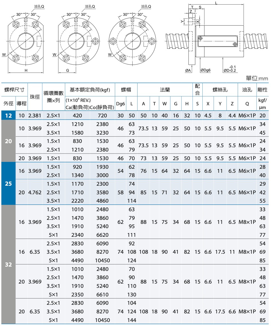 可提供複螺紋(多螺紋)於螺桿上,使承受負載的鋼珠數量增多而提高了剛性與耐久性。