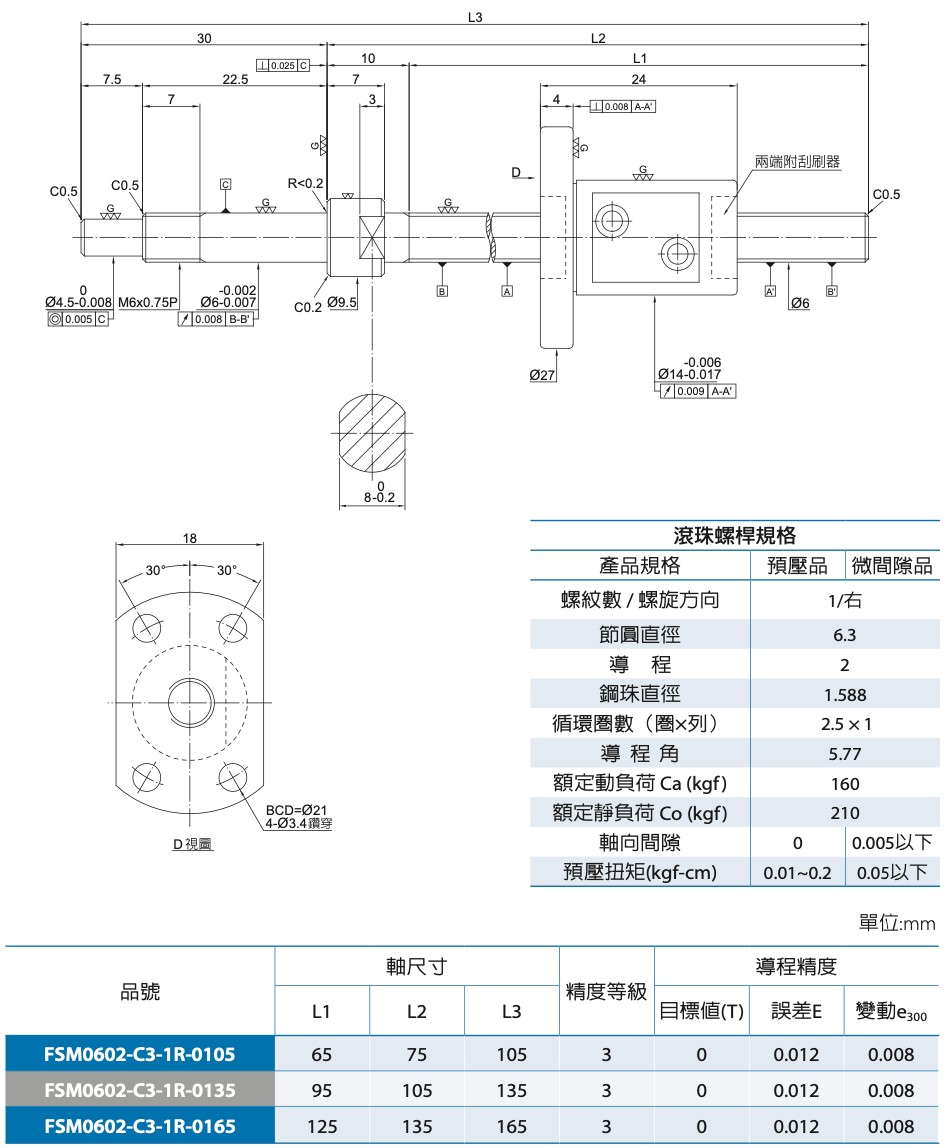 FSMC 軸徑Ø6 導程02|尺寸規格表