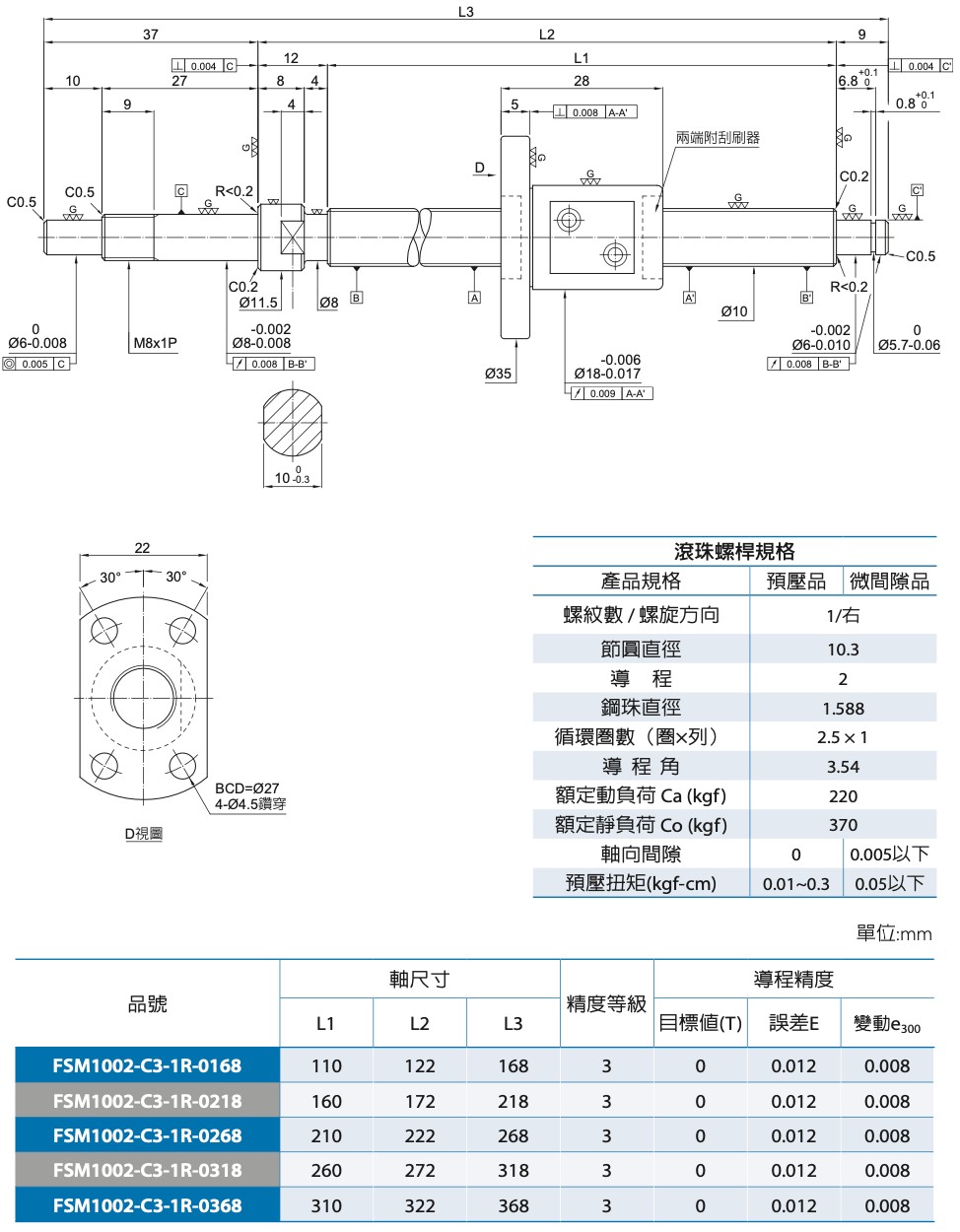 FSMC 軸徑Ø10 導程02|尺寸規格表