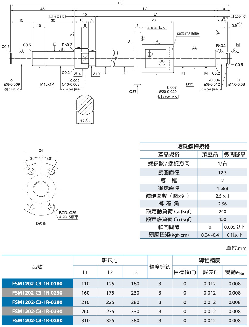 FSMC 軸徑Ø12 導程02|尺寸規格表