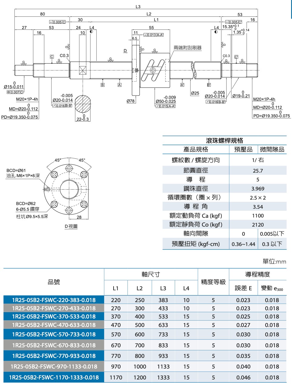 FSWC 軸徑Ø25 導程05|尺寸規格表