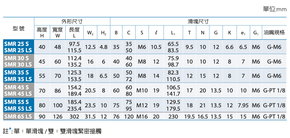 • SLIDE WAY 滾柱型/滾珠型 滑軌